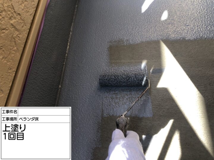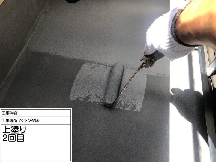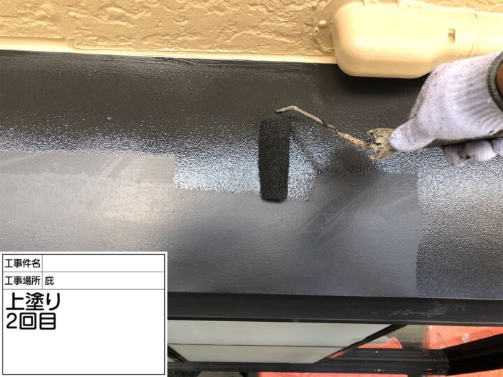 中塗りをした上から仕上げの上塗りをしました。上塗りをすることで、塗料本来の性能が確保されます。