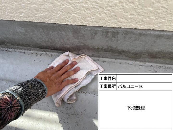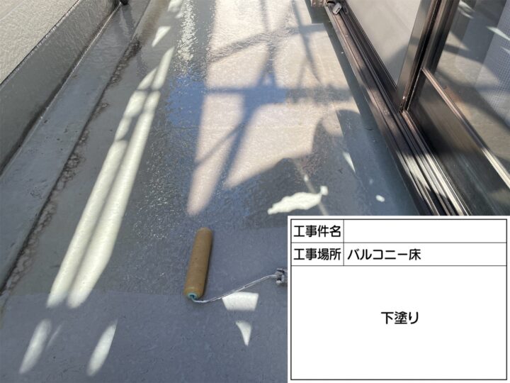 下地処理後ベランダ床全体にプライマーを塗布しました。