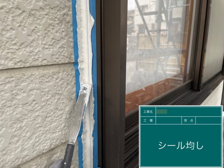 打設したシーリング材を丁寧に均しました。均し終えた後、マスキングテープを剥がし完成しました。