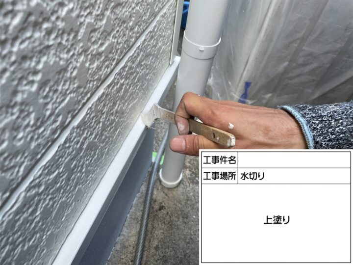 水切りは、色あせして美観を損ねていましたので、目粗をして、錆止めを塗り、上塗り2回で仕上げました。
