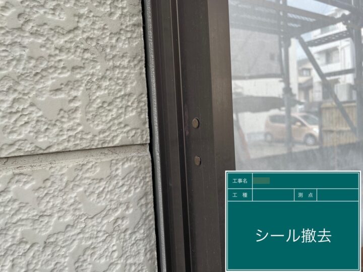 紫外線の影響で劣化した既存のシーリング撤去を行いました。