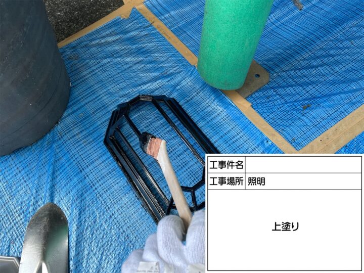 照明器具も錆や汚れが見られましたので、錆止めを塗り、上塗り2回で仕上げました。