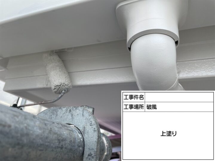 窯業系サイディングで出来た破風板・鼻隠し、こちらも下地処理し、プライマーを塗り、上塗りを2回全体へ塗装しました。