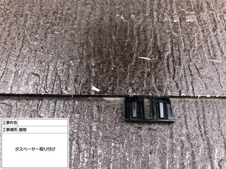 下塗り後に、上下の板の隙間が塗料で埋まってしまうことを防ぐために、タスペーサー取付を行いました。