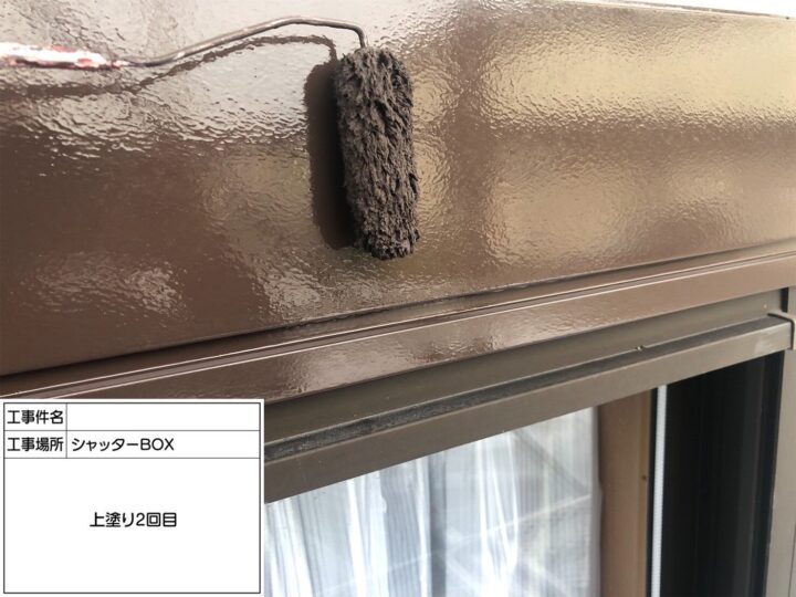 シャッターBOXは色が褪せ、少し錆が出てきていましたので、下地処理をし、錆止めを塗り、上塗り2回で仕上げました。