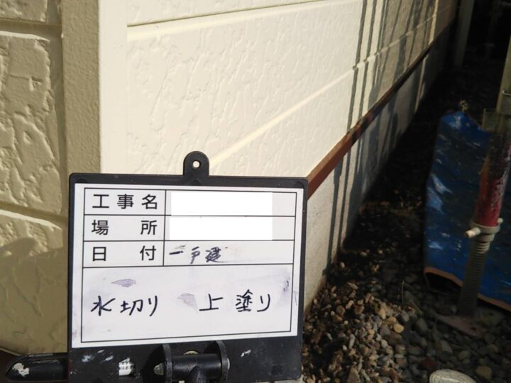 水切りも色あせや、塗膜の劣化が見られましたので、目粗をして、錆止めを塗り、上塗り2回で仕上げました。