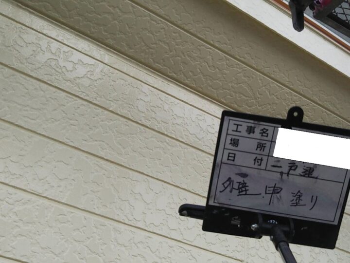 中塗り後、外壁最終仕上げの工程として上塗りを丁寧に行いました。