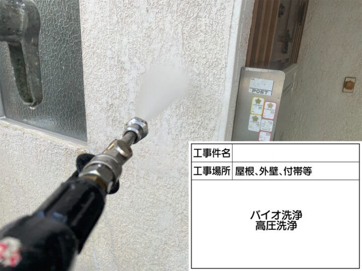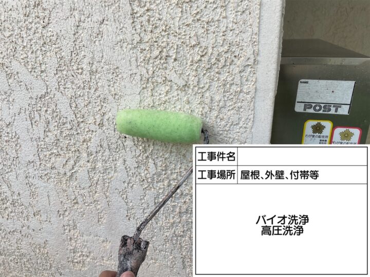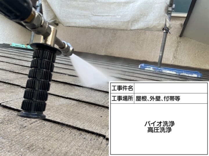 地域柄コケやカビが繁殖しやすい地域だったので、薬品を使ったバイオ洗浄も行いました。