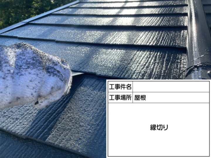 上下の板の隙間が塗料で埋まってしまうことを防ぐために、縁切りを行いました。