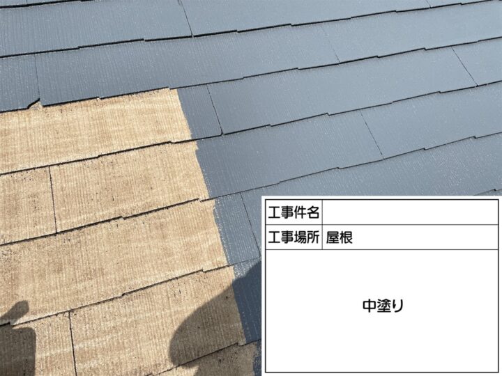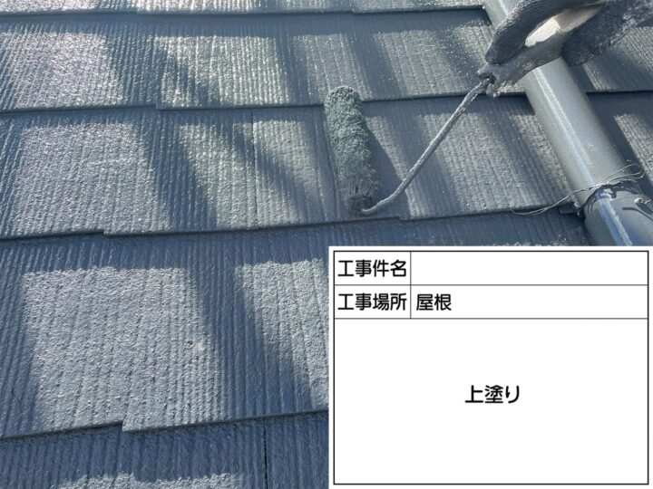 ですが屋根の劣化が進んでおり、屋根材が下塗り材を吸い込んでしまい、本来の密着の役割が果てせなくなってしまった為、下塗り工程を2回行い、中塗り塗料と上塗り塗料の密着度を向上させ美しい仕上がりとなりました。