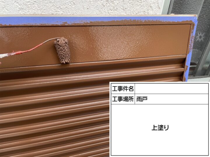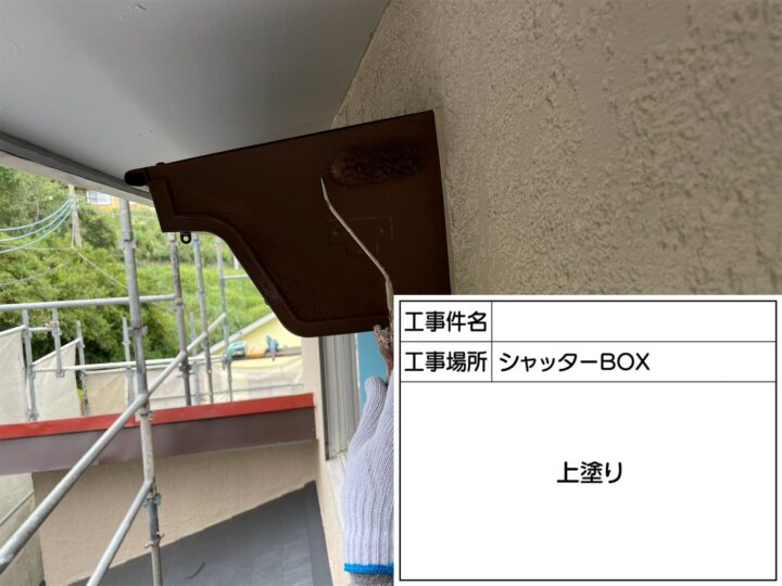 シャッターBOXなどは、雨の当たらない部分が錆びやすく注意が必要ですので、錆止めを塗り、上塗り2回で仕上げました。