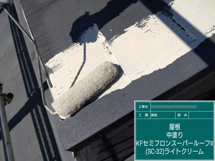 中塗りを行うことで、上塗り塗料が上手に密着し、きれいな屋根を作り上げるためにも必要な工程です。