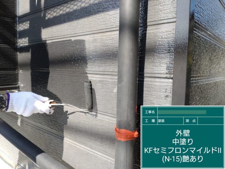 下塗り後、塗りムラができるような事故を防ぐためにも、中塗りを丁寧に行いました。