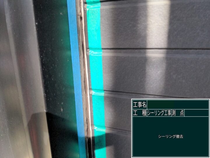 紫外線の影響で劣化した既存のシーリング材を撤去しました。
