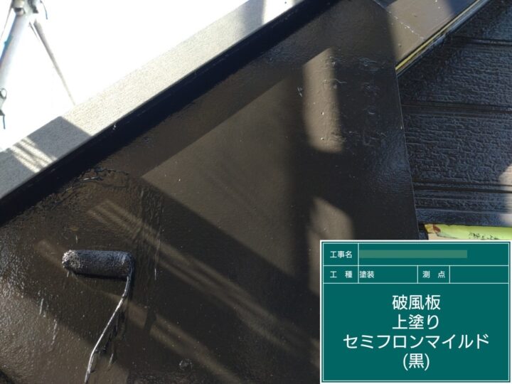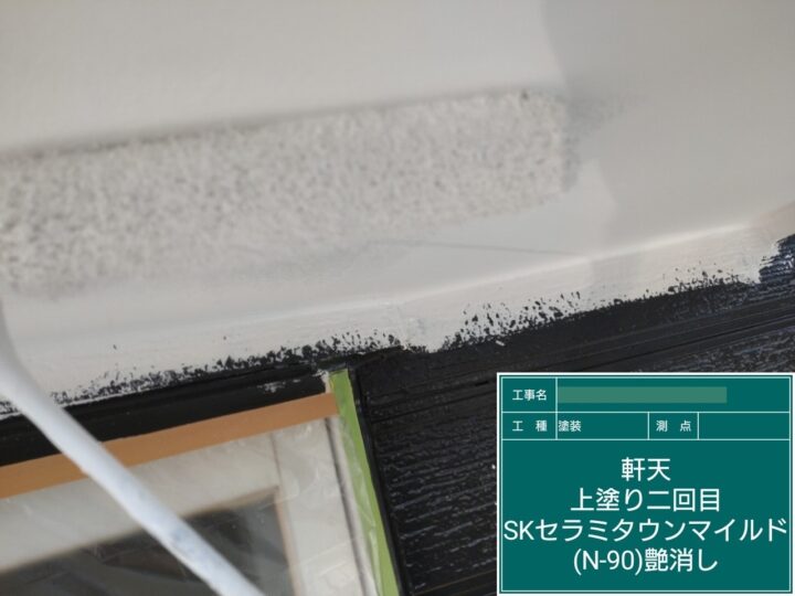 窯業系サイディングで出来た破風板・鼻隠し、こちらも下地処理し、プライマーを塗り、上塗りを2回全体へ塗装しました。