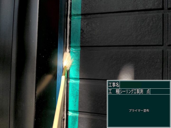 シーリングを施工する場所が乾燥していることを確認した後に、シーリング材が目地に密着するように、プライマーを塗布しました。