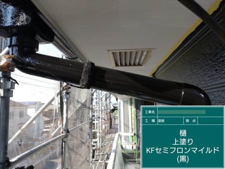 雨樋は吊り金具には錆止め塗料を塗布し、上塗り2回で仕上げました。