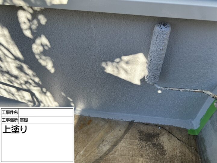 基礎はクラックが多々見受けられた為、クラックなどはシーリングで処理をし、専用塗料を2回塗りで仕上げました。