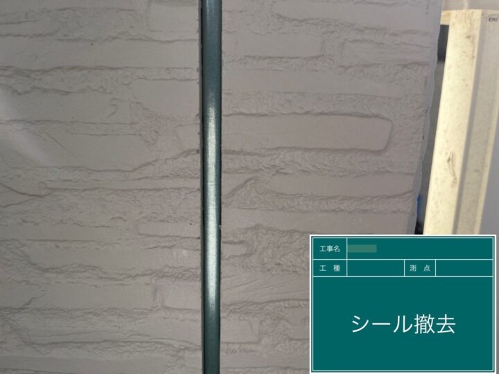 外壁目地やサッシ廻り目地など紫外線の影響で劣化した既存のシーリングを撤去致しました。