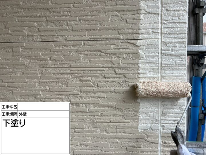 下地処理を済ませたあと、下塗りへ移りました。