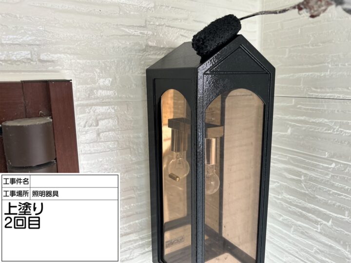 照明器具も目粗をして、錆止めを塗り、上塗り2回で仕上げました。