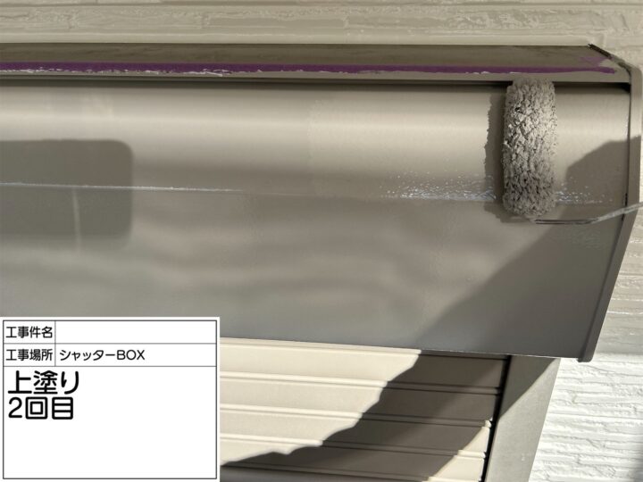 シャッターBOXなどは、雨の当たらない部分が錆びやすく注意が必要ですので、錆止めを塗り、上塗り2回で仕上げました。