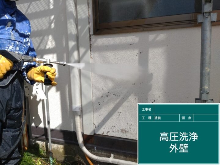 高圧洗浄により、外壁についた汚れやコケ、カビなどをきれいに落としました。
