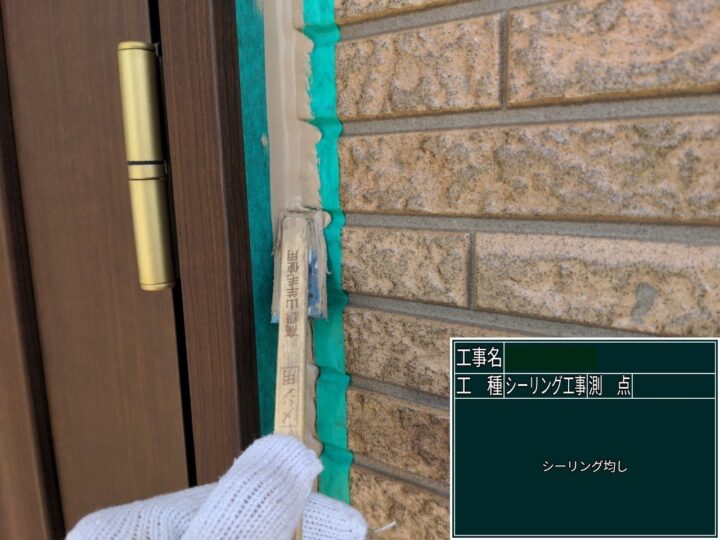 シーリング材打設した後、専用のへらを使用し、シーリング材を均していきました。