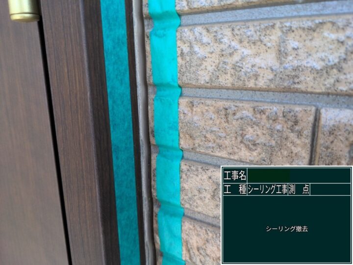 紫外線の影響により劣化したシーリング材の撤去を行いました。