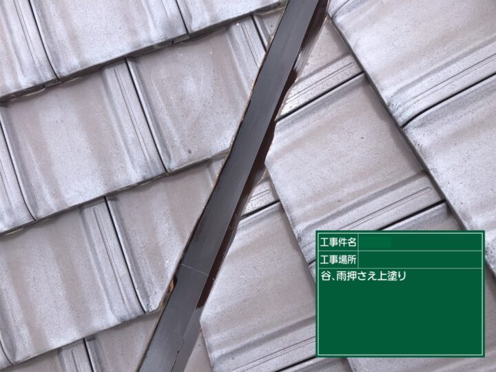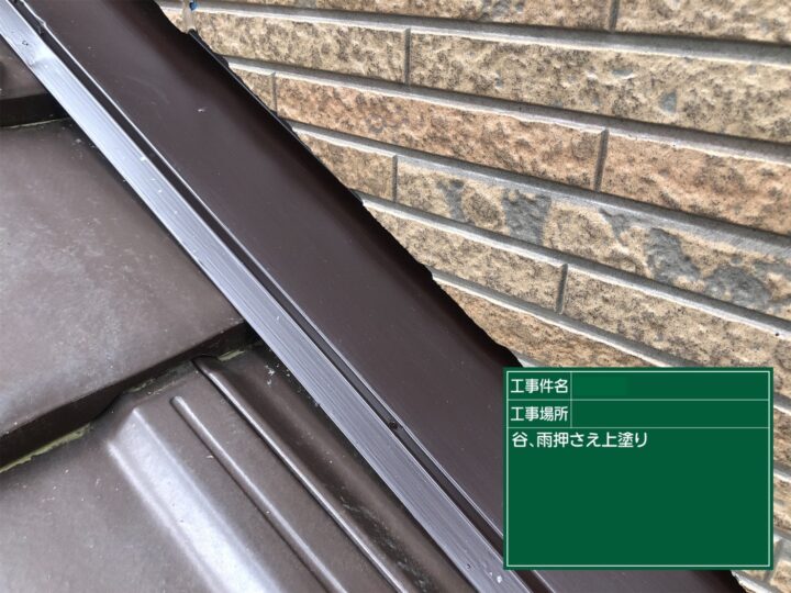 雨押えは錆等は見受けられませんでしたが、色あせしており美観を損ねていましたので、谷板金同様に塗装致しました。