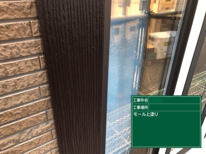 窯業系サイディングで出来たモールも、下地処理した後プライマーを塗り、上塗り2回で仕上げました。
