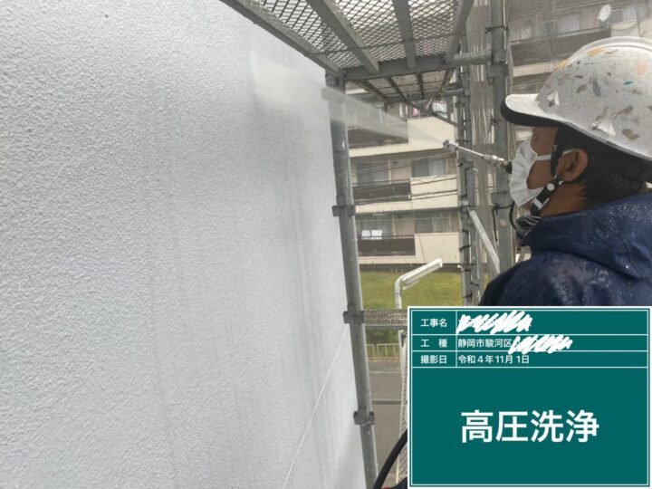 塗装前には、建物全体を高圧洗浄します。