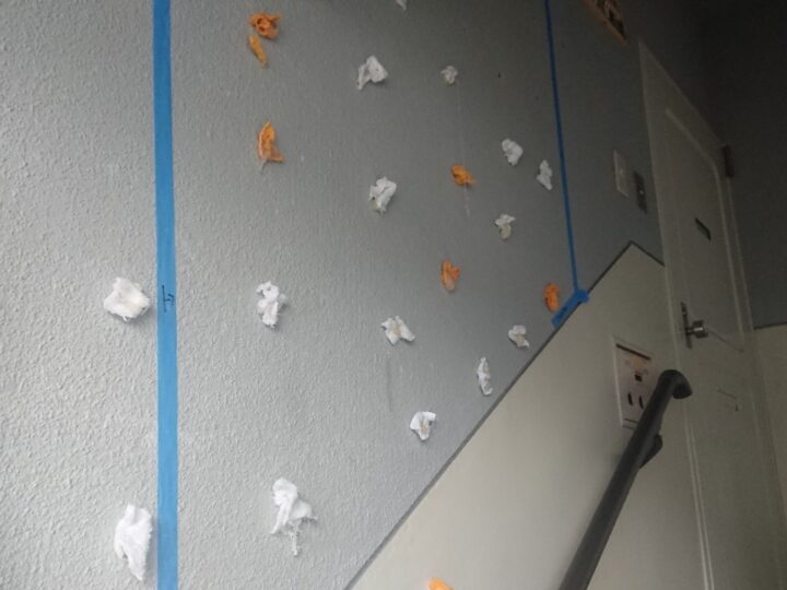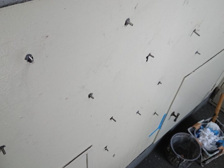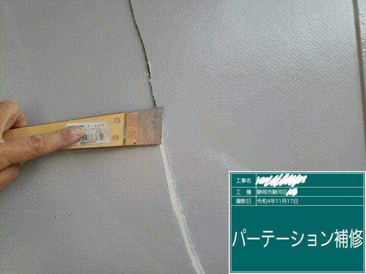 隣家との境にあるパテーションにも割れなどが見受けられます。これらもパテなどで丁寧に補修します。