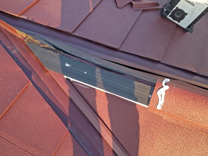 屋根の谷、トップライトからの雨漏りだった為、屋根のカバー工法をさせていただきました。