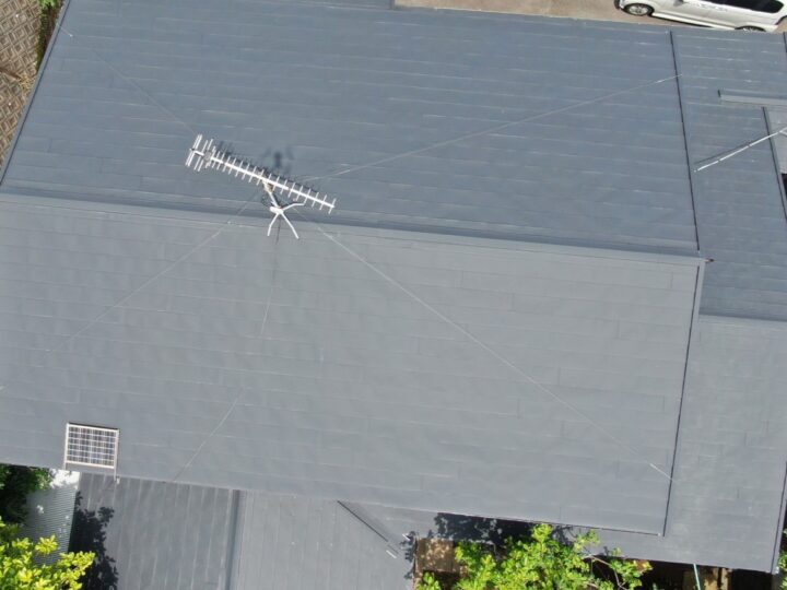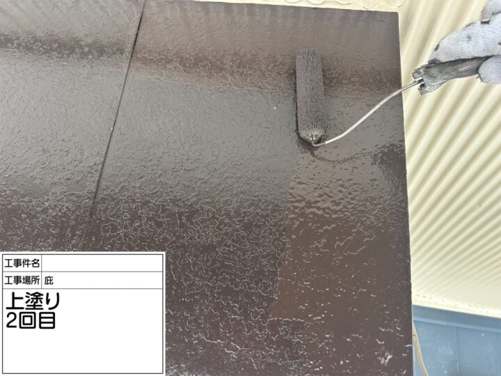 車が多く停める事が出来なかった為、屋根のカバー工法を行った後、塗装の職人が入り施工させていただきました。