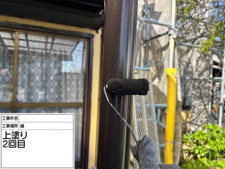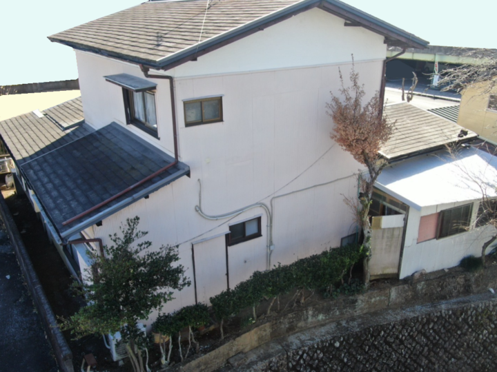 | 工事内容 | 外壁塗装 屋根カバー工法 付帯物塗装(樋・エアコンホースカバー・軒天・垂木・もや・漆喰部・破風板・木製サッシ枠・木製戸袋枠・戸袋・雨戸・中間水切り・勝手口ドア・庇・パーゴラ骨組み・鉄製柱)樋バンド交換 樋破損部補修 軒天破損部補修 戸袋破損部補修 庇破損部補修 |