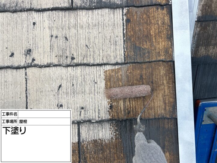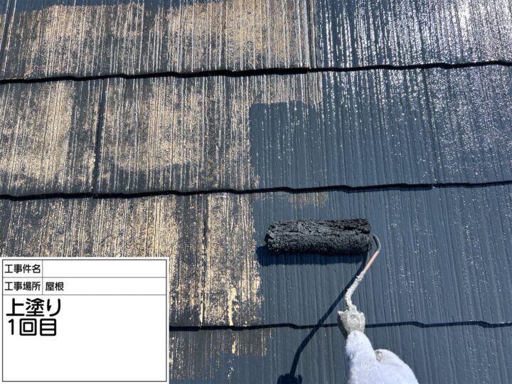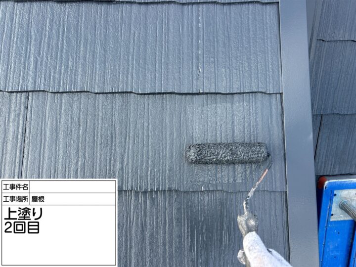 また、屋根の勾配が急勾配だった為、屋根足場を仮設して施工させていただきました。