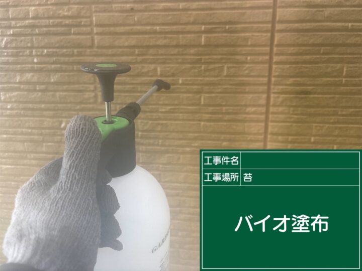 日の当たりにくい場所に苔が多く見受けられた為、薬品洗浄をしてから高圧洗浄を行いました。