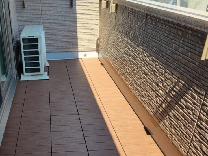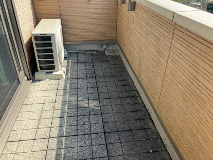 ご希望によりバルコニー床の敷物を撤去処分し、新しく新設させていただきました。