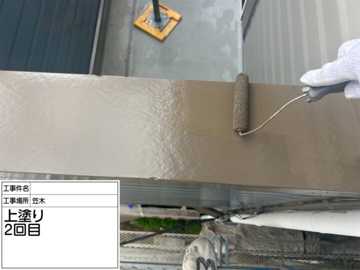 車が多く停める事が出来なかった為、屋根のカバー工法を行った後、塗装の職人が入り施工させていただきました。
